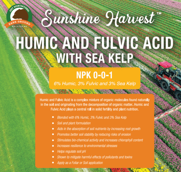 Humic acid, fulvic acid, and nutrient-rich sea kelp is an all-natural blend that is a potent organic supplement that enhances soil health, boosts nutrient uptake, and promotes strong root and plant growth. NPK 0-0-1